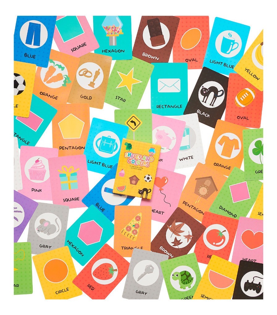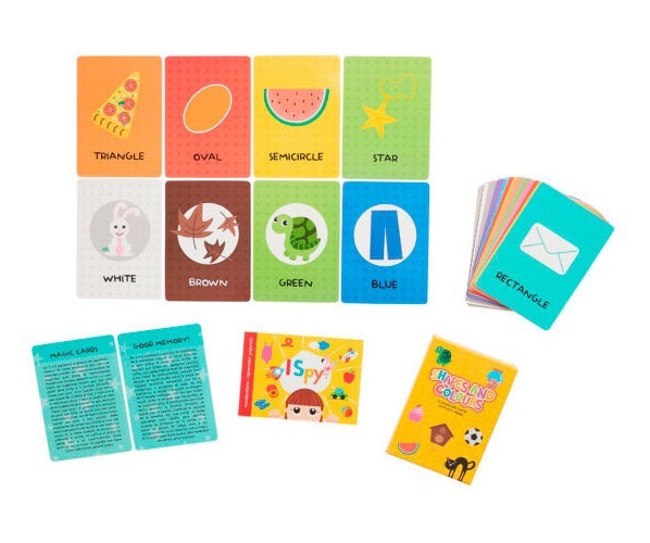 A través de ilustraciones claras y atractivas, las cartas presentan tanto las formas geométricas como ejemplos de objetos reales de la vida cotidiana, facilitando la asociación visual y el aprendizaje del idioma. El set incluye juegos de observación que estimulan los sentidos, la percepción, la atención y la toma de decisiones, promoviendo una participación activa durante el juego.