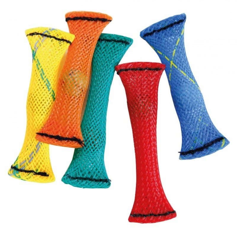 Están formados por tubos de plástico tejido que contienen una bola interior móvil, permitiendo deslizar los dedos de un extremo a otro. Esta acción repetitiva resulta especialmente relajante y eficaz para canalizar inquietud, mejorar la motricidad fina y acompañar momentos de enfoque.