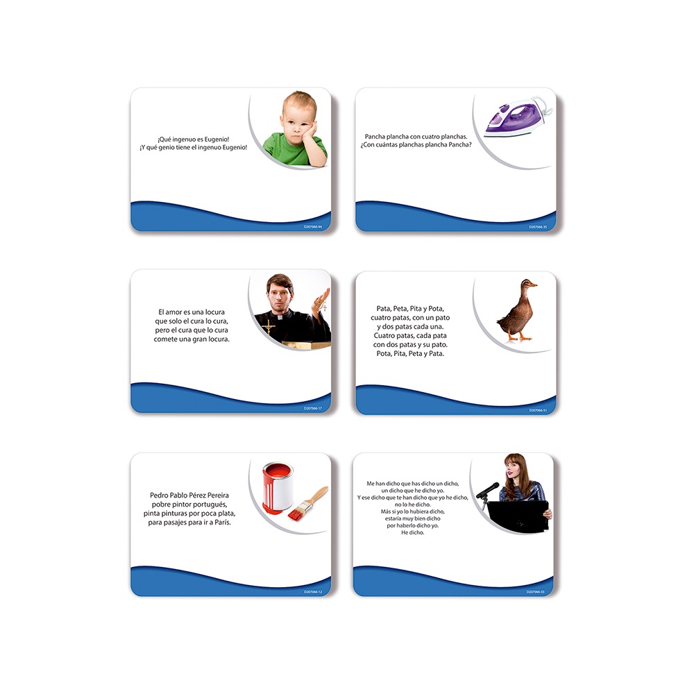 Aprender y reír van de la mano con estas divertidas tarjetas de trabalenguas. Un recurso ideal para estimular el pensamiento ágil, fortalecer habilidades cognitivas y mejorar la dicción mientras se amplía el vocabulario.